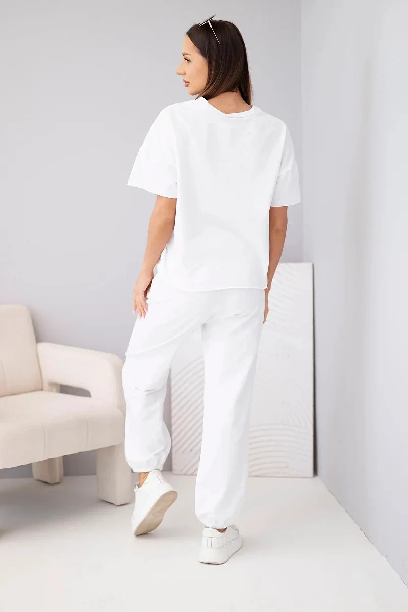 Dámska bavlnená blúzka s krátkym rukávom a tepláková súprava White