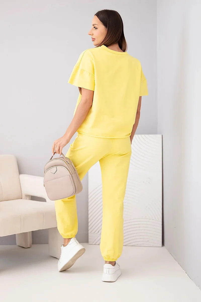 Dámska bavlnená blúzka s krátkym rukávom a tepláky Yellow