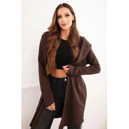 Dámská bavlněná bunda s kapucí a prodlouženým předním dílem hnědá