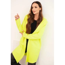 Dámska bavlnená bunda s kapucňou a predĺženou prednou časťou v neónovej žltej farbe