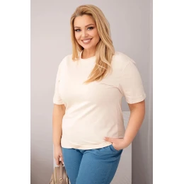 Dámská bavlněná halenka Plus Size s krátkým rukávem basic béžová