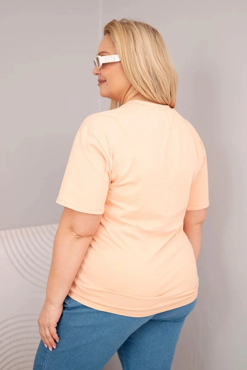 Dámská bavlněná halenka Plus Size s krátkým rukávem basic lososová