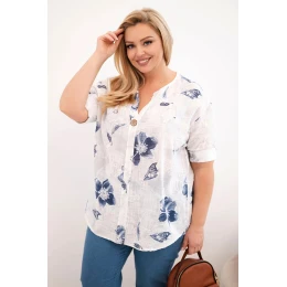 Dámská bavlněná halenka Plus Size s květinovým vzorem bílá