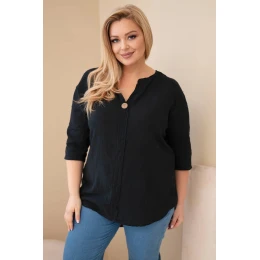 Dámska bavlnená blúzka v nadmernej veľkosti s výstrihom na gombíky čierna