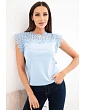 Dámska blúzka s čipkovaným vrchným dielom a krátkymi rukávmi je návrhom pre ženy, ktoré ocenia spojenie pohodlia a jemnej elegancie. Model vyniká efektnou priesvitnou čipkou v hornej časti a na rukávoch, vďaka ktorej pôsobí ľahko, žensky a veľmi štýlovo. Hladká spodná časť z materiálu príjemného na dotyk sa dobre prispôsobí postave a zaručuje pohodlie počas celého dňa. Je skvelou voľbou na každý deň, ako aj na rodinné stretnutia, výlety s priateľmi alebo do práce.