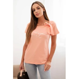 Dámska bavlnená blúzka s mašľou na ramene a marhuľovou potlačou