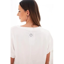 Dámska bavlnená blúzka s véčkovým výstrihom a krátkymi rukávmi biela