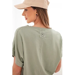 Dámska bavlnená blúzka s výstrihom do V a krátkymi rukávmi v khaki farbe