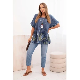 Dámská bavlněná košile s květinovým vzorem džínová modrá