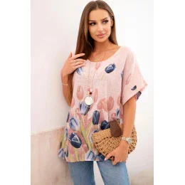 Hledáte lehkou, vzdušnou halenku ideální na teplejší dny? Tato dámská halenka s krátkým rukávem je kombinací přirozeného pohodlí a výjimečného stylu. Je vyrobena ze 100% bavlny a zaujme nejen příjemným materiálem, ale i nádherným vzorem tulipánů ve spodní části. Volný střih skvěle padne na postavu a zajišťuje plnou volnost pohybu bez ohledu na příležitost. Je to skvělá volba jak na každodenní nošení, tak i na setkání s přáteli. V kombinaci s oblíbenými džínami nebo sukní vytvoříte outfit, který upoutá pozornost. Květinový motiv jí dodává svěžest a ženský půvab, zatímco klasický lodičkový výstřih a krátké rukávy ji činí velmi pohodlnou na nošení. Velikost je univerzální a bude vyhovovat dámám velikosti S, M nebo L.