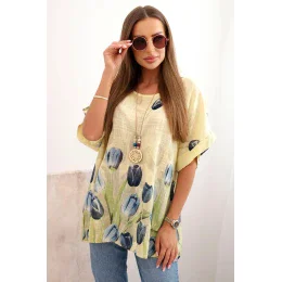 Hledáte lehkou, vzdušnou halenku ideální na teplejší dny? Tato dámská halenka s krátkým rukávem je kombinací přirozeného pohodlí a výjimečného stylu. Je vyrobena ze 100% bavlny a zaujme nejen příjemným materiálem, ale i nádherným vzorem tulipánů ve spodní části. Volný střih skvěle padne na postavu a zajišťuje plnou volnost pohybu bez ohledu na příležitost. Je to skvělá volba jak na každodenní nošení, tak i na setkání s přáteli. V kombinaci s oblíbenými džínami nebo sukní vytvoříte outfit, který upoutá pozornost. Květinový motiv jí dodává svěžest a ženský půvab, zatímco klasický lodičkový výstřih a krátké rukávy ji činí velmi pohodlnou na nošení. Velikost je univerzální a bude vyhovovat dámám velikosti S, M nebo L.