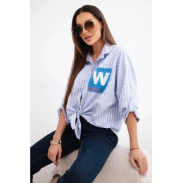 Dámská bavlněná košile s pásky a vázáním modrá