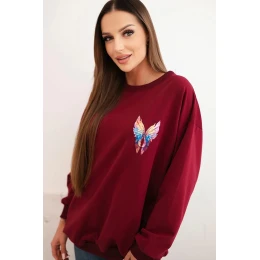 Dámska bavlnená mikina nadrozmernej veľkosti s farebnými krídlami na chrbte bordová