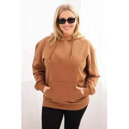 Dámska bavlnená mikina s kapucňou a klokankou v nadmernej veľkosti Camel