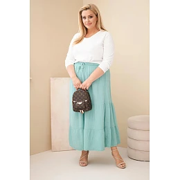 Dámská bavlněná mušelínová sukně Plus Size s volánem a gumou tmavě mentolová