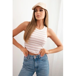 Dámska bavlnená pruhovaná blúzka bez rukávov tmavoružová