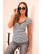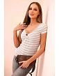 Štýlová dámska rebrovaná blúzka s prúžkami je vynikajúcou voľbou pre ženy, ktoré ocenia módny vzhľad a pohodlie na každý deň. Priliehavý strih krásne zvýrazní postavu a efektný výstrih s ozdobným krúžkom dodáva celku ženský a moderný charakter. Jemný prúžkovaný vzor robí model ľahkým a dokonale zapadá do letných trendov.