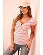 Dámska bavlnená prúžkovaná blúzka s výstrihom a ozdobným krúžkom tmavoružová