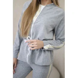 Dámská bavlněná souprava s proužky a stahovacími lemy šedý