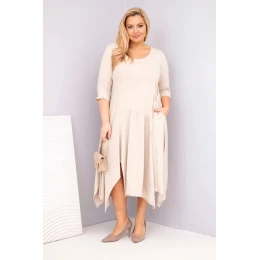 3. Dámska bavlnená sukňa s asymetrickým lemom v béžovej farbe