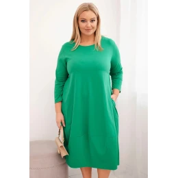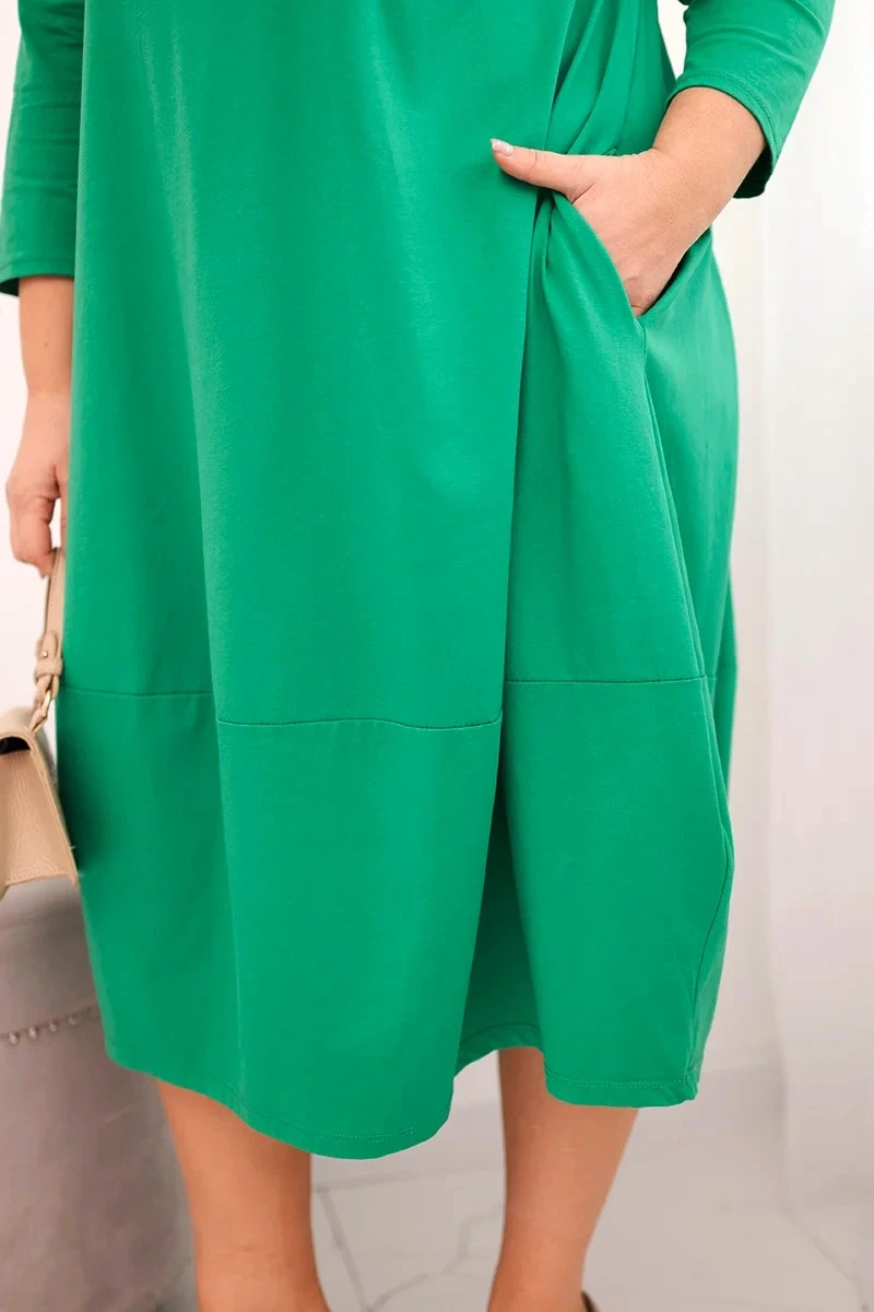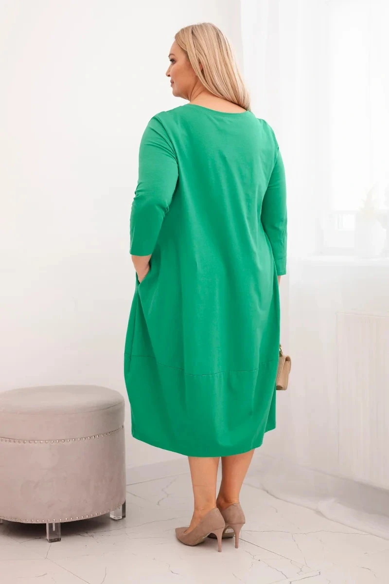 Dámská bavlněná sukně Plus Size s ohrnovacími rukávy a kapsami zelená
