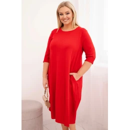 Dámská bavlněná sukýnka Plus Size s ohrnutým rukávem a kapsami červená