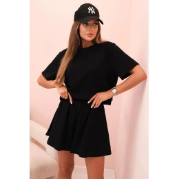 Dámska bavlnená súprava so širokými šortkami čierna
