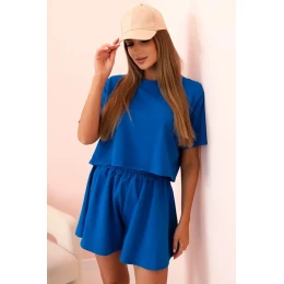 Dámska bavlnená súprava so širokými šortkami v chrpovo modrej farbe