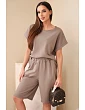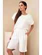 Dámský komplet tričko a kraťasy z bavlny s krátkým rukávem je ideální volbou pro ženy, které si cení pohodlí a módního, casual stylu. Sada se skládá z volného trička s krátkým rukávem a pohodlných kraťasů s elastickým pásem, což zajišťuje maximální volnost pohybu a skvělé přizpůsobení postavě. Vyrobený z vysoce kvalitního materiálu s převahou bavlny, komplet je příjemný na dotek a prodyšný, díky čemuž se hodí jak do domácího prostředí, tak na každodenní výlety nebo letní procházky. Tričko s jednoduchým střihem se krásně upraví na postavě a kraťasy s gumou v pase zaručují pohodlí po celý den. Minimalistický design dělá z tohoto kompletu nadčasový kousek, který se snadno stylizuje – můžete ho nosit společně nebo kombinovat jednotlivé části s ostatním oblečením. Italská výroba zajišťuje vysokou kvalitu provedení a pečlivost o detaily.