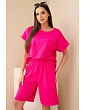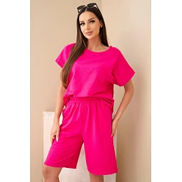 Dámska bavlnená súprava - tričko s krátkym rukávom a šortky s elastickým pásom fuchsiová