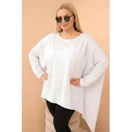 Táto dámska plus size tunika z bavlny je skvelou voľbou pre ženy, ktoré majú rady voľnosť, pohodlie a módny, moderný strih. Je vyrobená z mäkkej, elastickej bavlny a zaručuje pohodlie počas celého dňa. Veľmi voľný strih a výrazne asymetrický lem vytvárajú jedinečný oversize efekt, ktorý sa krásne prispôsobí postave a dokonale zakryje všetky nedokonalosti. Model sa skvele hodí na každodenné štylizácie - k legínam, priliehavým nohaviciam alebo džínsom .
