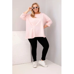 Dámská blůza plus size s bavlnou a dlouhým rukávem a nařasením pudrově růžová