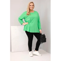 Dámská blůza plus size s bavlnou a dlouhým rukávem a nařasením světle zelená