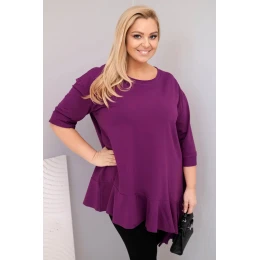 Dámske Plus veľkosť blúzka s bavlnou a volánik a roll-up rukávy tmavo fialová