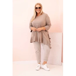 Tento dámský plus size top s bavlnou je výjimečný model, který spojuje pohodlí s módním, ženským akcentem. Ušitý z měkké a elastické bavlněné pleteniny, zajišťuje komfort nošení po celý den. Volný střih neobepíná postavu, a dekorativní volán na spodním okraji dodává topu lehkost a charakter.
