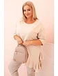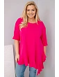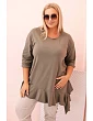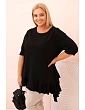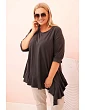 Tento dámsky plus size top s bavlnou je výnimočný model, ktorý spája pohodlie s módnym, ženským nádychom. Je vyrobený z mäkkého a elastického bavlneného úpletu, ktorý zaručuje celodenné pohodlie pri nosení. Voľný strih sa nelepí na postavu a ozdobný volánik na spodnom okraji dodáva topu ľahkosť a charakter.