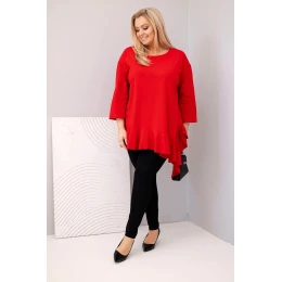Dámská blůza Plus Size s bavlnou, volánem a ohrnovacími rukávy červená