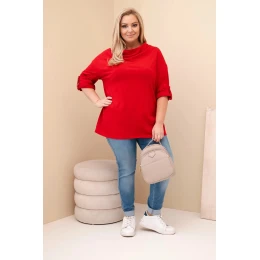 Dámská blůza Plus Size s bavlnou volného střihu s vodním výstřihem červená