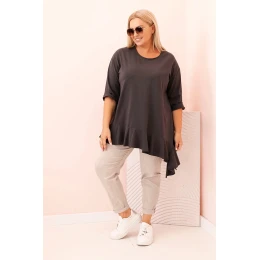 Tento dámský plus size top s bavlnou je výjimečný model, který spojuje pohodlí s módním, ženským akcentem. Ušitý z měkké a elastické bavlněné pleteniny, zajišťuje komfort nošení po celý den. Volný střih neobepíná postavu, a dekorativní volán na spodním okraji dodává topu lehkost a charakter.