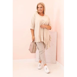 Tento dámský plus size top s bavlnou je výjimečný model, který spojuje pohodlí s módním, ženským akcentem. Ušitý z měkké a elastické bavlněné pleteniny, zajišťuje komfort nošení po celý den. Volný střih neobepíná postavu, a dekorativní volán na spodním okraji dodává topu lehkost a charakter.