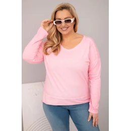 Dámska blúzka v nadmernej veľkosti s véčkovým výstrihom a dlhšou zadnou časťou svetlo ružová
