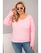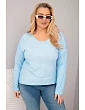 Dámska blúzka nadrozmernej veľkosti s výstrihom do V a dlhším chrbtom v modrej farbe