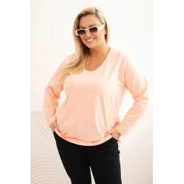 Dámská blůza Plus Size s výstřihem do V a dlouhým rukávem meruňková