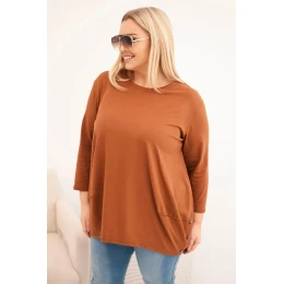 Dámska blúzka v nadmernej veľkosti z bavlny s ozdobnými gombíkmi a vyhrnutými rukávmi camel