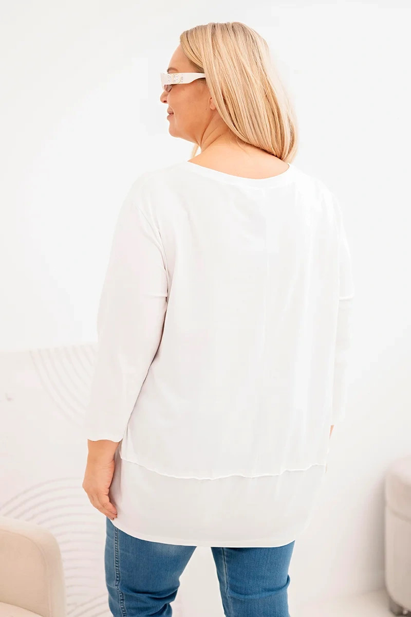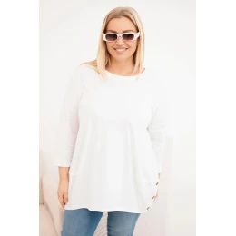Dámska blúzka v nadmernej veľkosti z bavlny s ozdobnými gombíkmi a vyhrnutými rukávmi ecru