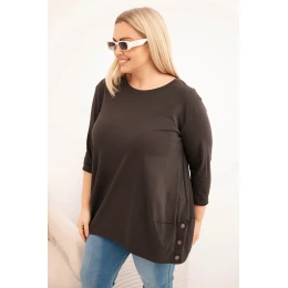 Dámská blůza Plus Size z bavlny s ozdobnými knoflíky a ohrnutými rukávy hnědá