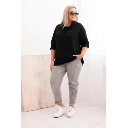 Dámská blůza Plus Size z bavlny s volným střihem a vodním výstřihem černá