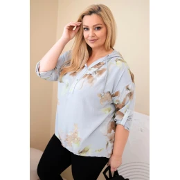 Dámská blůza Plus Size z viskózy s kapucí a květinovým vzorem šedá