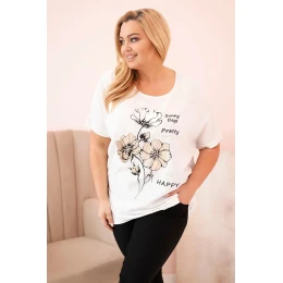 Dámská blůza Plus Size z viskózy s květinovým potiskem a nápisem ecru