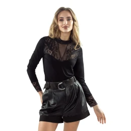 Blúzka Ernesta Eldar - vyrobená z kvalitnej viskózy - výstrih z čipky a tylovej sieťoviny - manžety ukončené čipkou Zloženie materiálu: 85 % viskóza + 10 % polyamid + 5 % elastan